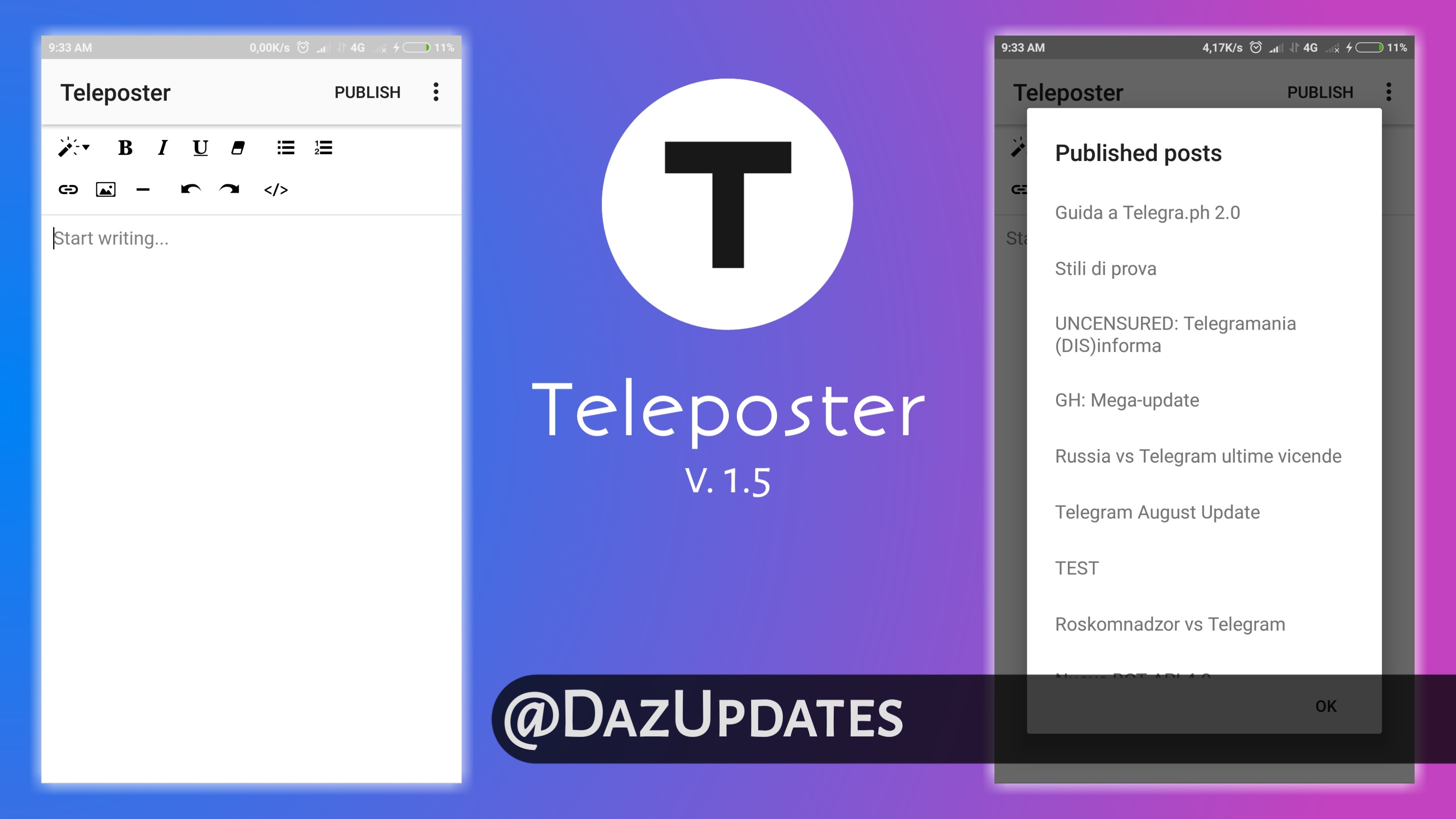Sebbene abbia numerose (talvolta gravi) pecche resta l'applicazione migliore per chi deve creare abitualmente pagine telegra.ph da dispositivi Android mobili, i contro di quest'app possono essere superati utilizzando un comune browser per qualche secondo. Perché è la migliore? Grazie al suo design, molto più comodo di Teleposter.