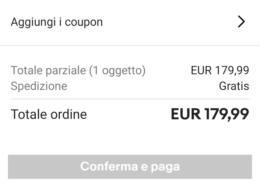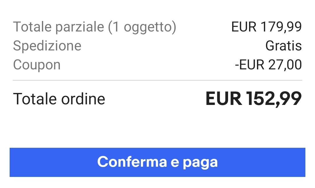 6️⃣ Ora ti ritroverai lo sconto nel riepilogo e ti basterà precedere all'ordine del tuo prodotto a prezzo scontato cliccando su "Conferma e paga"