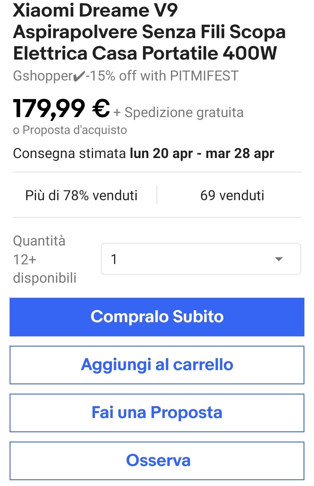3️⃣ Ora se ci sono opzioni di taglia, colore o altro seleziona quello che preferisci e premi "Aggiungi al carrello"