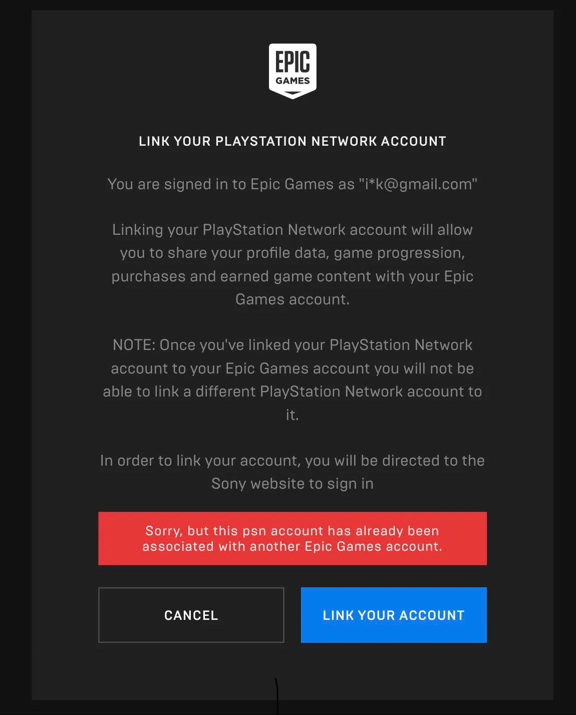 "Sorry, but this (console) account has already been associated with another Epic Games account"