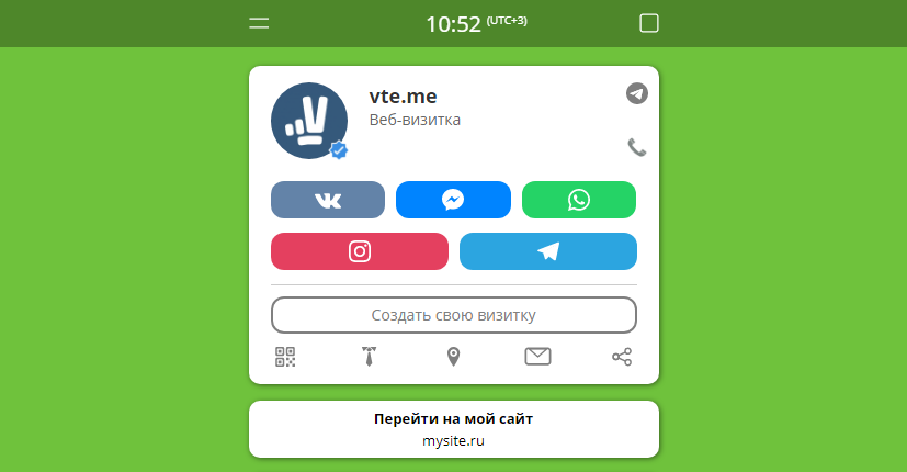 Пример веб-визитки: vte.me/start