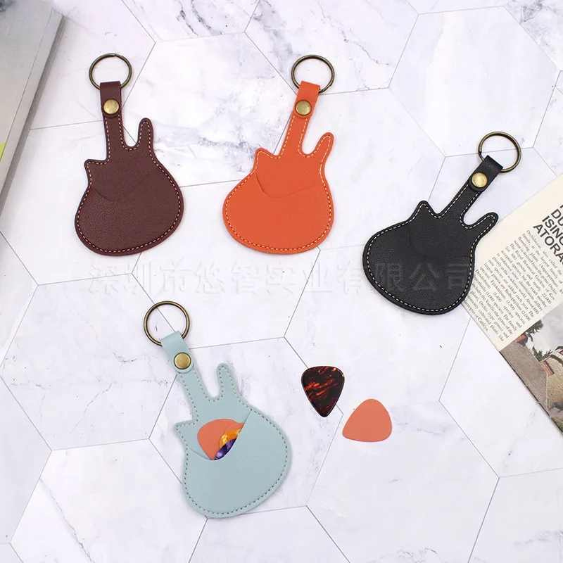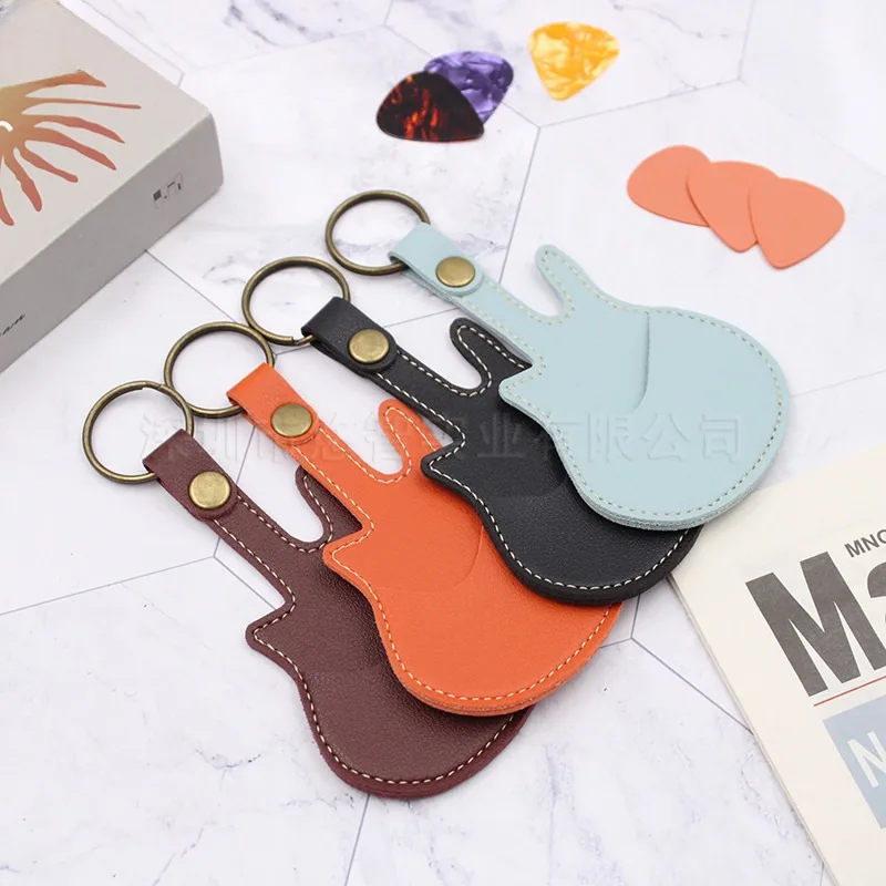 Guitar Pick Holder Leather Plectrum Case Bag Keychain Guitar Shape Guitar Picks String Instrument Accessories Excluding Pick - Купить с бесплатной доставкой