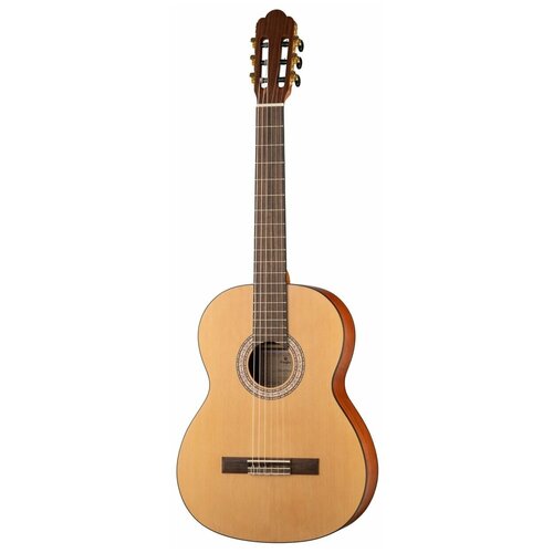 Guitare classique Prodipe JMFPRIMERA4/4, couleur naturelle. Les guitaristes débutants ont des besoins particuliers et importants auxquels peu de fabricants peuvent répondre. Grâce au savoir-faire des artisans, Prodipe Guitars a réussi à créer le modèle de départ idéal d'une guitare classique. De la conception à la fabrication, en passant par le choix des bois, le réglage de la hauteur des cordes et des sillets en os, jusqu'à la forme du manche, tout a été fait pour faciliter l'apprentissage des débutants. Et n'oublions pas l'insert en carboneLes guitaristes débutants ont des besoins particuliers et importants auxquels peu de fabricants peuvent répondre. Grâce au savoir-faire des artisans, Prodipe Guitars a réussi à créer le modèle de départ idéal d'une guitare classique. Prodipe JMFPRIMERA4/4 Primera Caractéristiques : Table : épicéa. Dos et éclisses : acajou. Bordure : plastique ABS. Manche : Acajou avec deux incrustations de carbone. Seuils : os. Touche : composite de palissandre. Finition : vernis mat. Mécanique de l'accordeur : plaquée or, poignées noires. Cordes : Savarez New Cristal Corum haute tension.JMFPRIMERA4/4 Primera Guitare Classique 4/4, Prodipe Les guitaristes débutants ont des besoins particuliers et importants que peu de fabricants peuvent satisfaire. Grâce au savoir-faire des artisans, Prodipe Guitars a réussi à créer le modèle de départ idéal d'une guitare classique. De la conception à la fabrication, en passant par le choix des bois, le réglage de la hauteur des cordes et des sillets en os, jusqu'à la forme du manche, tout a été fait pour faciliter l'apprentissage des débutants. Et n'oublions pas l'incrustation de carbone dans le manche, pour une guitare extrêmement légère et résistante : vraiment une rareté à cette gamme de prix ! Manche : résistant, léger, bien équilibré, pour un jeu confortable et fiable ! Equipé de deux ancrages en fibre de carbone (matériau léger et très résistant) : nouvelle technologie au meilleur prix ! Bois soigneusement sélectionné avec un dos en acajou et une table en épicéa de qualité supérieure. Cordes : Savarez New Cristal Corum haute tension (Réf : 500 CJ). Le résultat : une guitare facile à prendre en main, très équilibrée, avec une sonorité et une richesse harmonique inhabituelles pour cette gamme de prix. Table : épicéa. Dos et éclisses : acajou. Bordure : plastique ABS. Manche : Acajou avec deux incrustations de carbone. Seuils : os. Touche : composite de palissandre. Finition : vernis mat. Mécanique de l'accordeur : plaquée or, poignées noires. Cordes : Savarez New Cristal Corum haute tension.