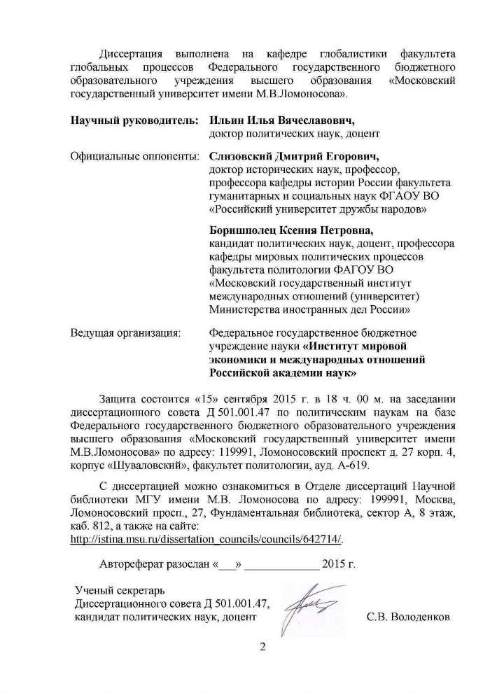 Громогласова Елизавета Сергеевна Диссертация на тему: «Гуманитарная составляющая во внешней политике государства» на соискание ученой степени доктора политических наук . Специальноcть 23 .00 .04 - Политические проблемы международных отношений, глобального и . . .