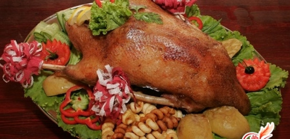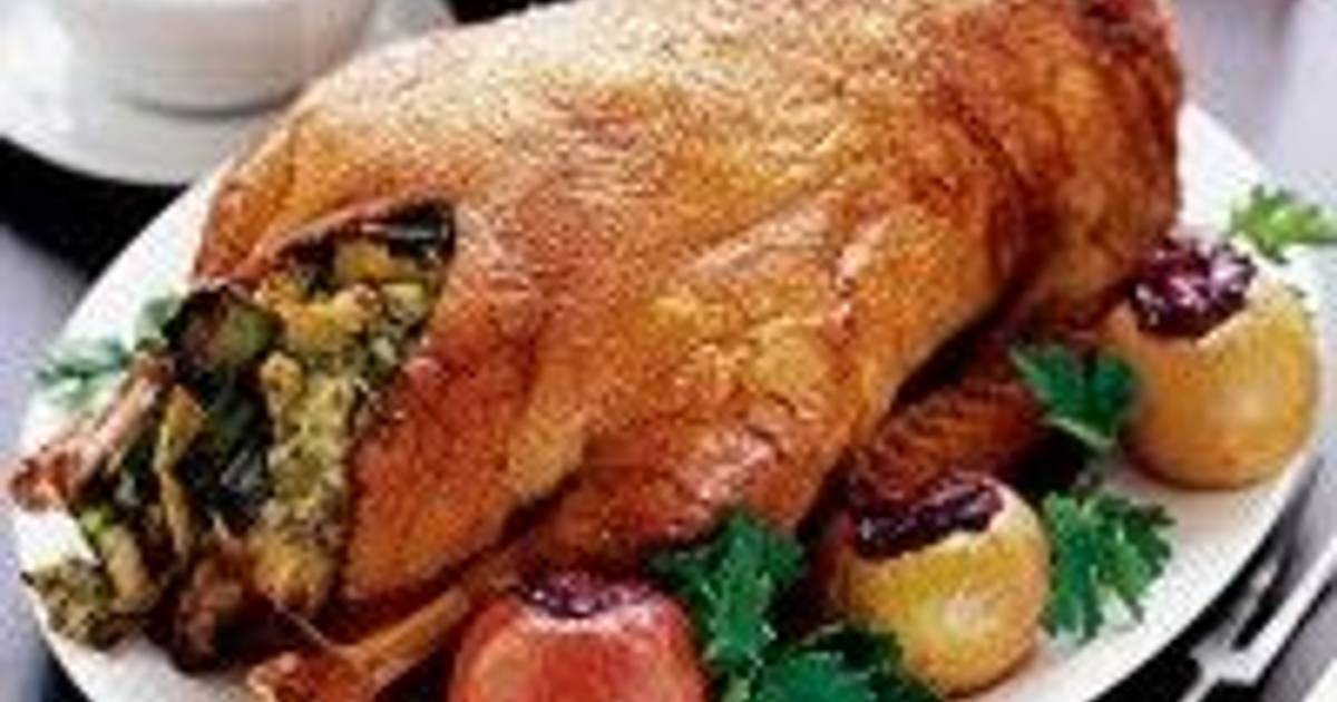 Запеченный гусь, фаршированный яблоками и черносливом . . .