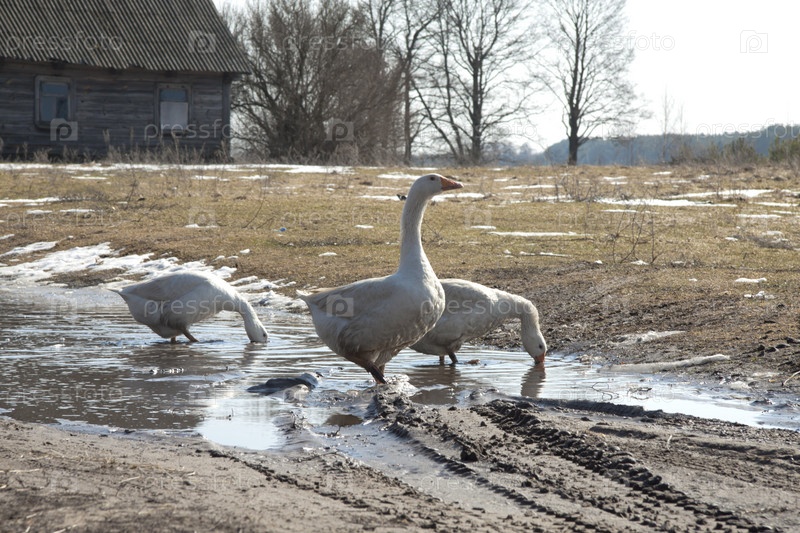 Гуси В Деревне Фото