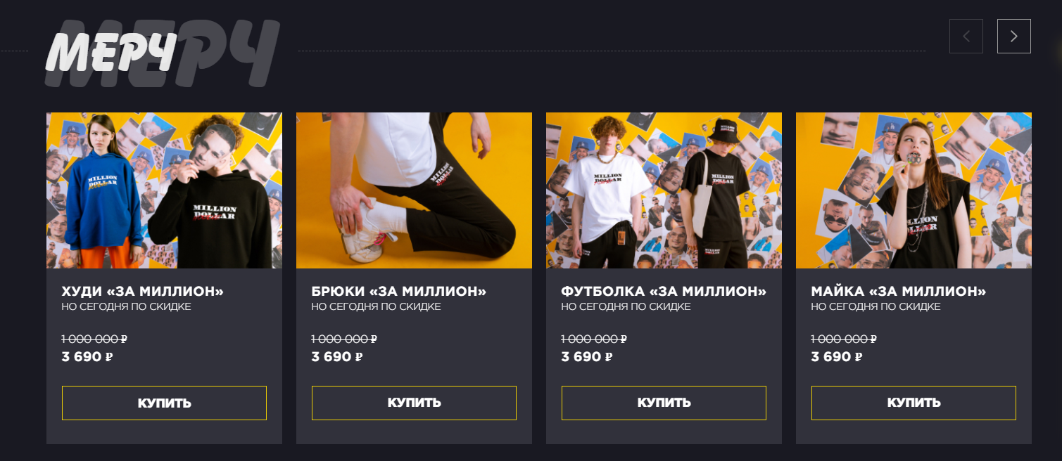 На сайте предлагается мерч, фотографии и цены которого взяты с сайта mamcupy.com, впрочем, купить его пока все равно не получится.