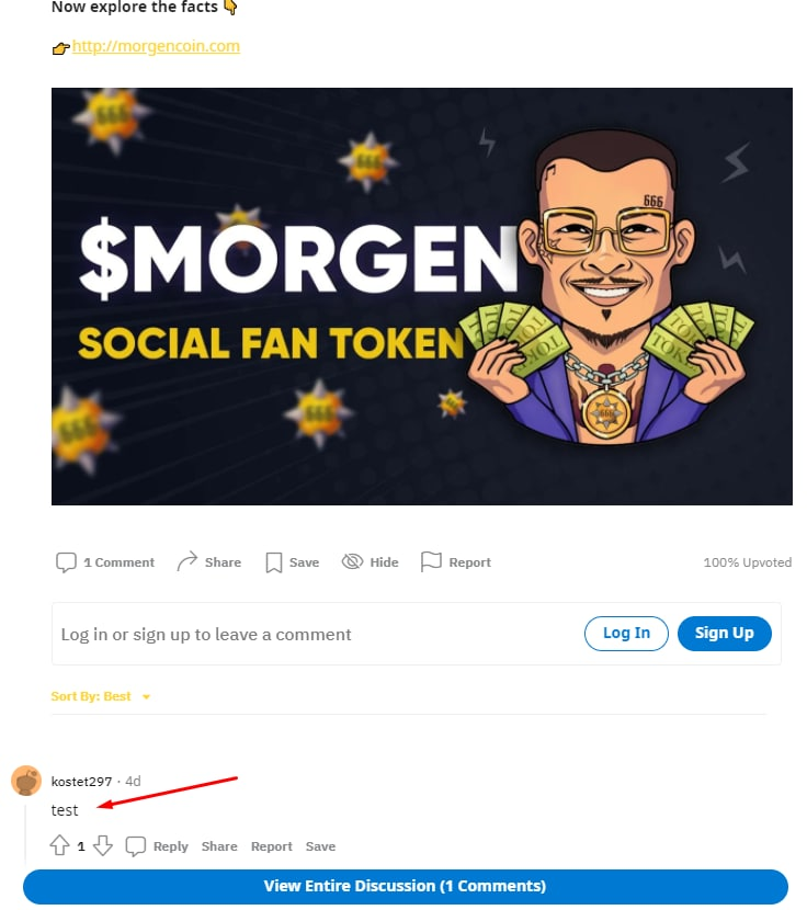 Например, находится вот такой пост на Reddit, в котором имеется комментарий: test за авторством некоего пользователя kostet297.