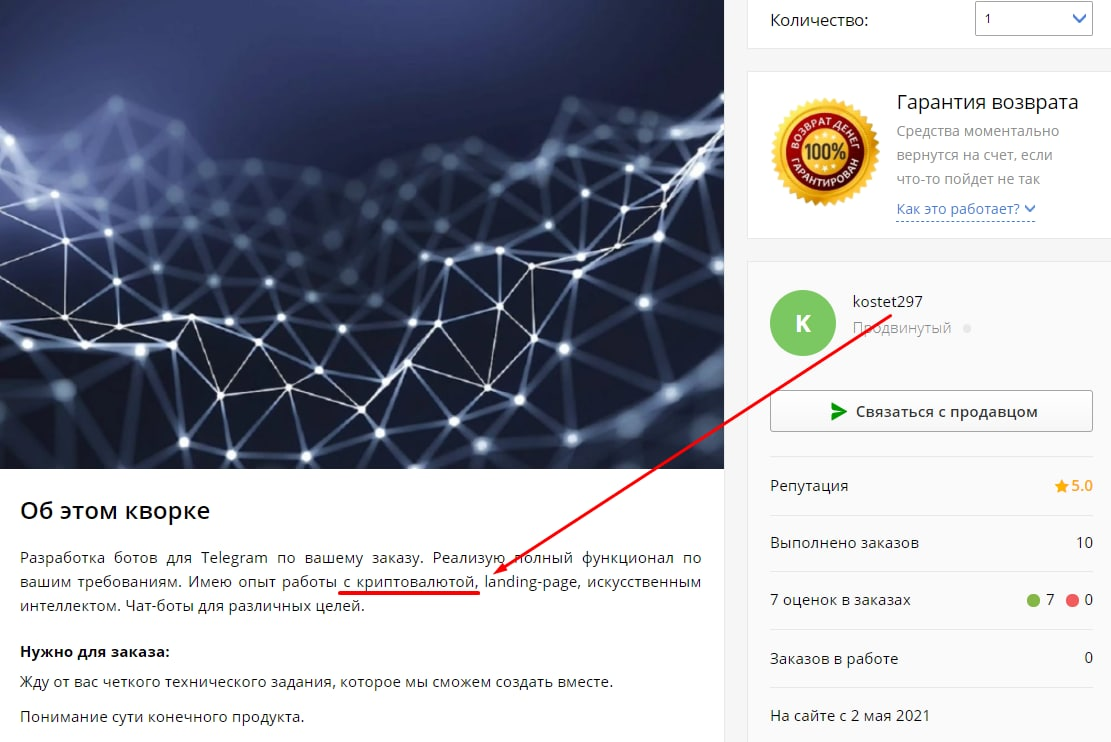 К тому же kostet297 имеет опыт работы с криптовалютой, что вполне перекликается с нашей тематикой.