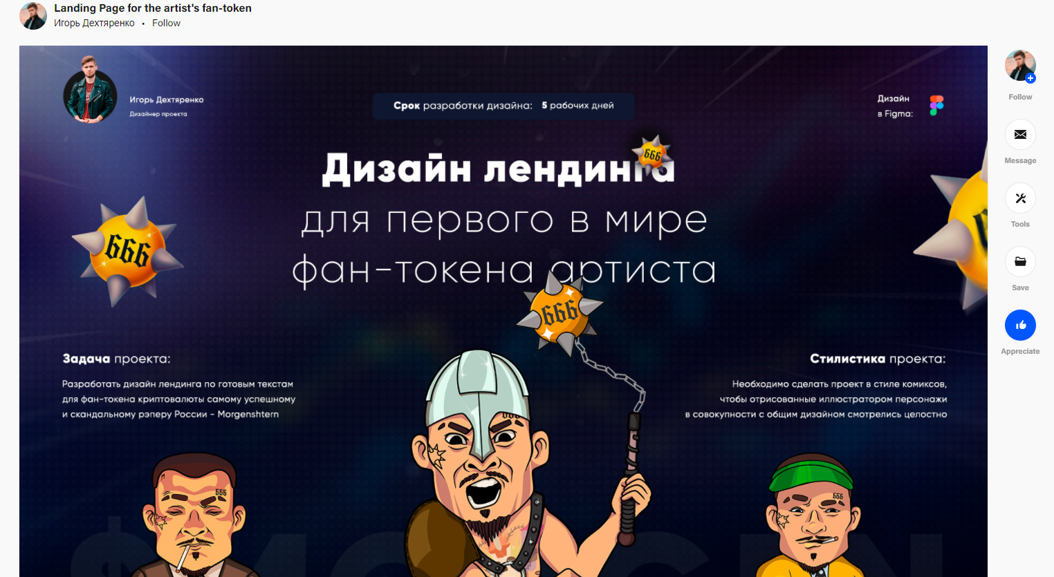 Находим портфолио по адресу: https://www.behance.net/gallery/123300599/Landing-Page-for-the-artists-fan-token