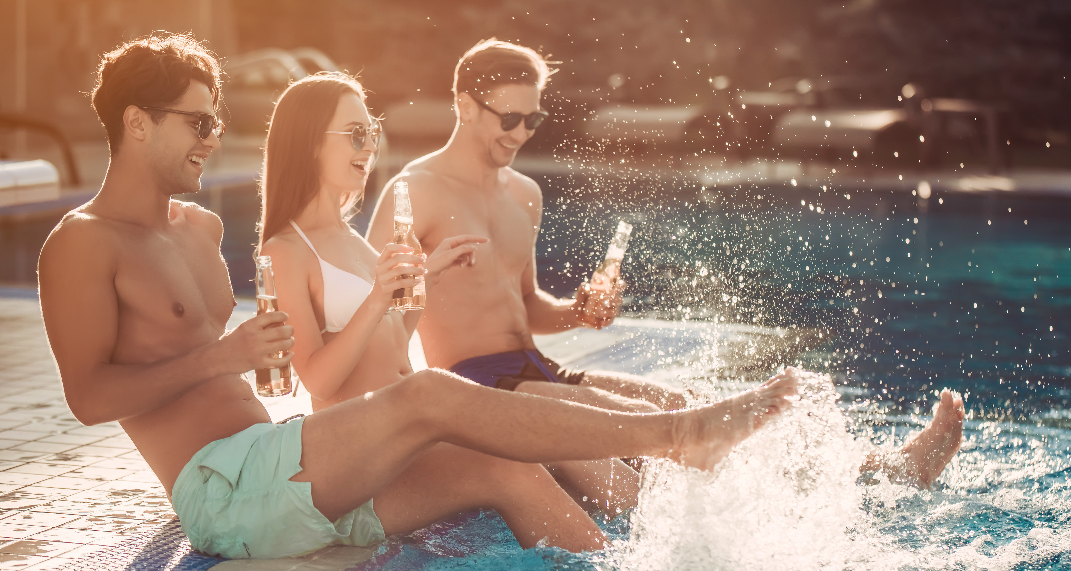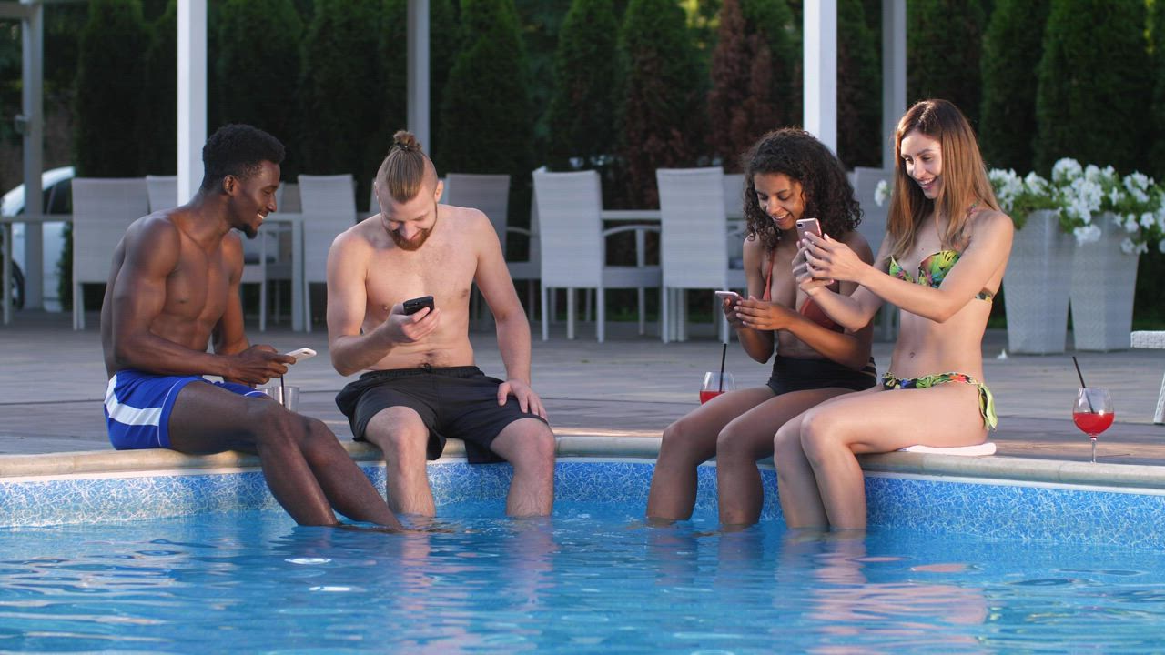 Guys Watch Colleagues Posing And Shaking Shapes In The Pool