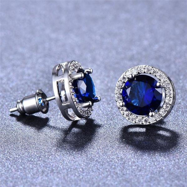Гвоздики серебро с синим камнем