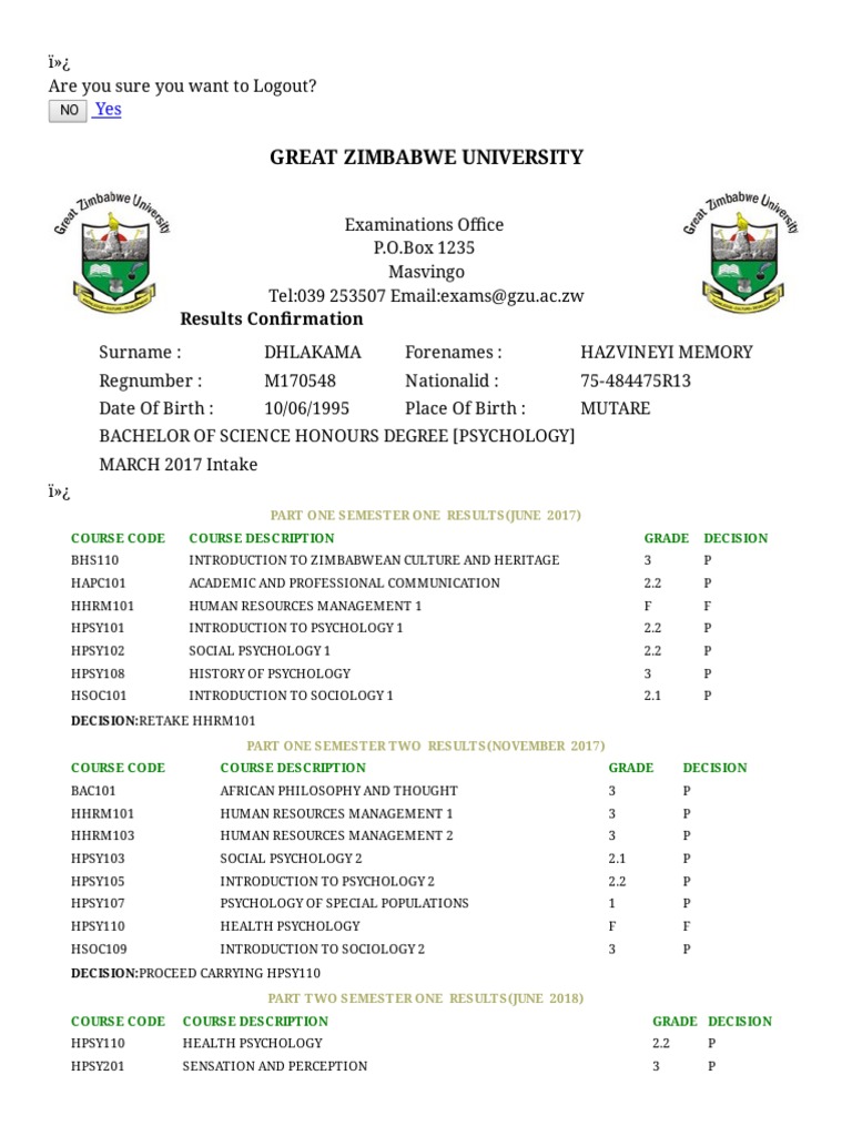Great Zimbabwe University Results 2022/2023 . Great Zimbabwe University Results 2022/2023 - Details of Great Zimbabwe University ( GZU ) Result for 2022/2023 Academic year . Results are the lists of candidates who have been selected as qualified for admission into the College base on Great Zimbabwe University Entry Requirements . . The Authorities of Great Zimbabwe University has released Result . . .