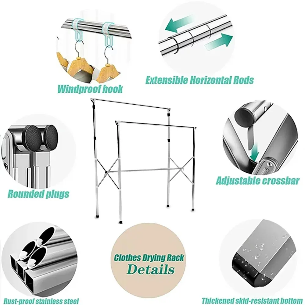 H-Type Metal Clothes Drying Rack, 95 in Extended Length, Foldable Design - Sturdy & Space-Saving,free shipping - Купить с бесплатной доставкой