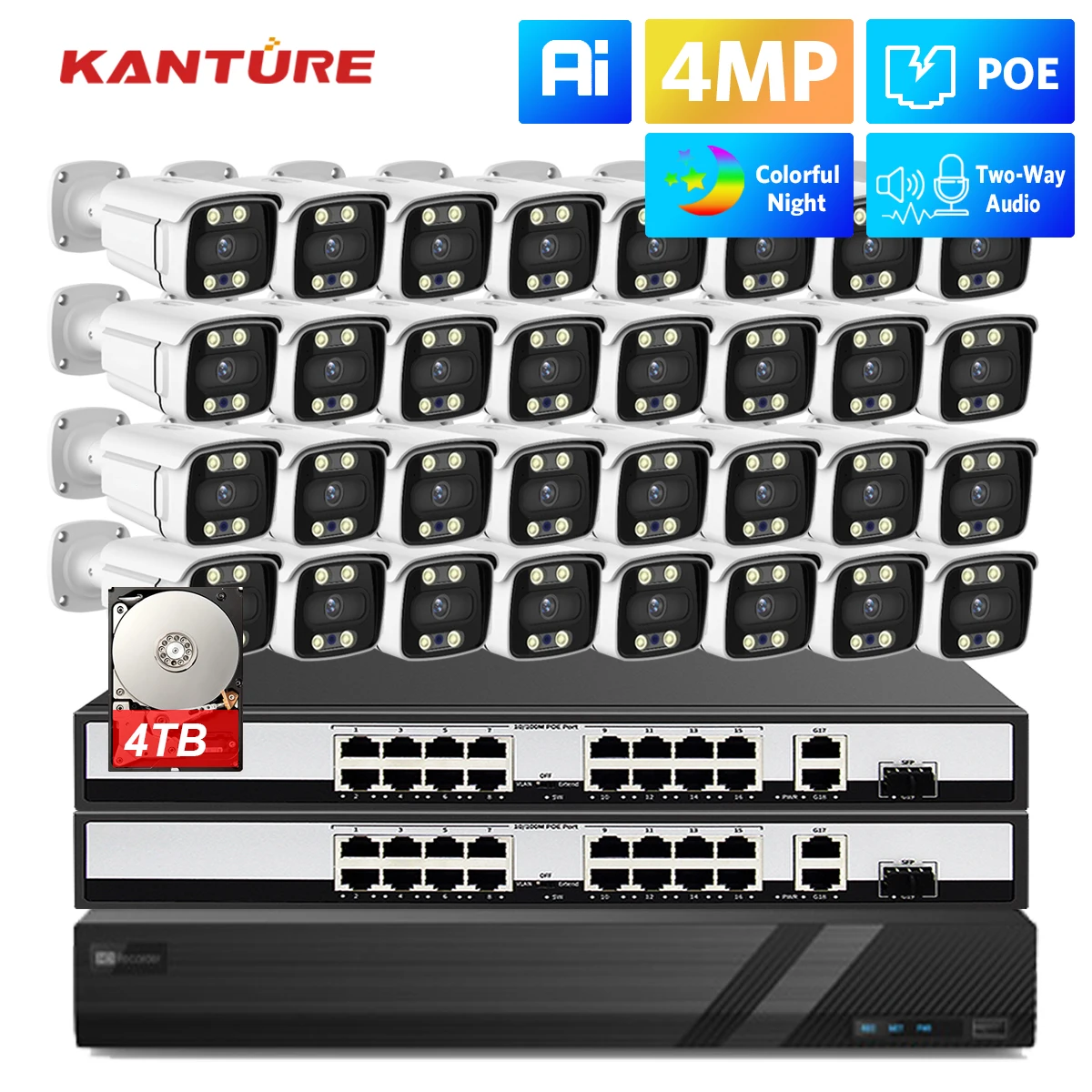 H.265 32CH 4K CCTV Security System 4MP Ai Human Two Way Audio Waterproof Ip Camera Color Night Vision Video Surveillance Set - Купить с бесплатной доставкой