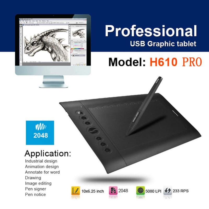 Huion H610 PRO — профессиональный графический планшет для рисования . Работает с разным программным обеспечением, включая Photoshop, Illustrator (пакет Adobe), CorelDraw и другие программы разных производителей .