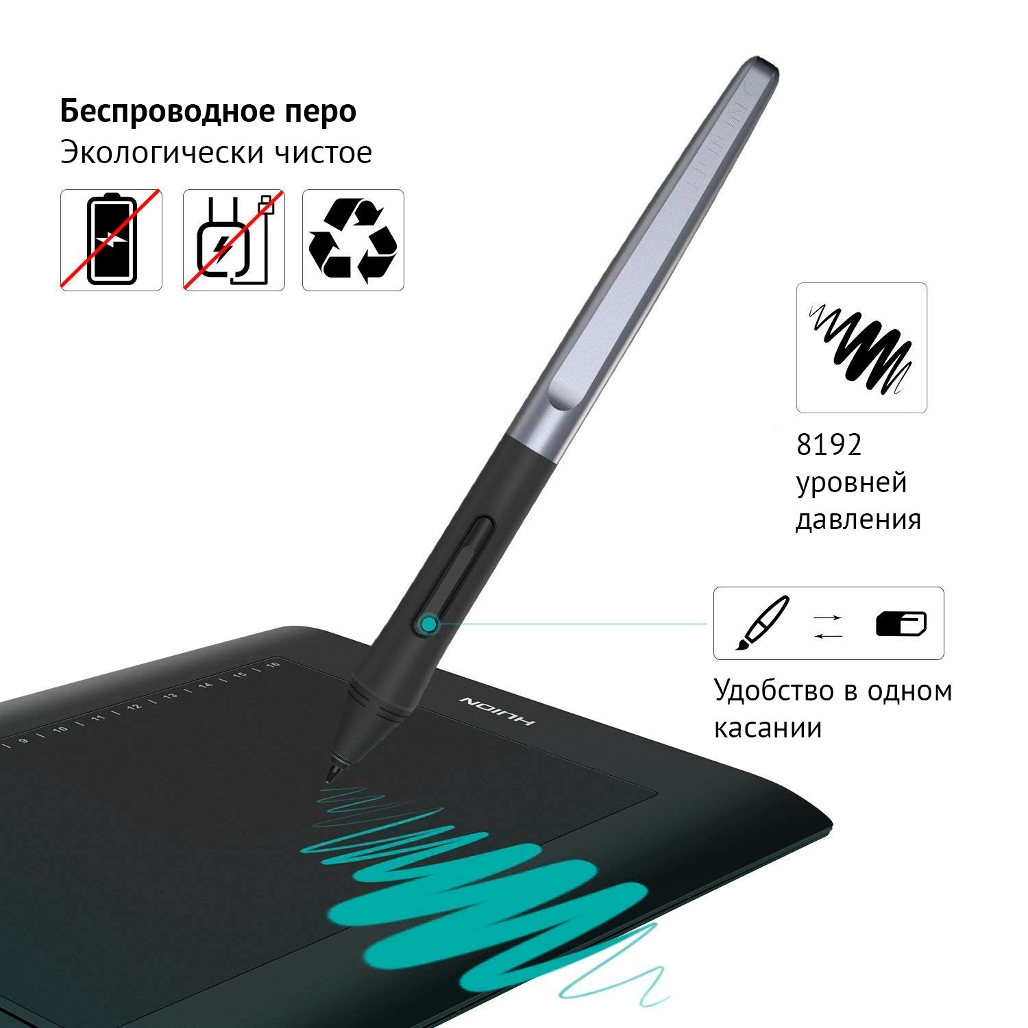 Battery-free pen PW100 . Digital pen PW100 that comes with H610PRO V2 is developed with battery free technology, which makes long time creative works and timely record of inspiration possible . Battery free pen PW100 is made of durable materials and brings users a substantial grip .