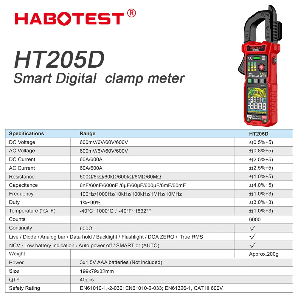 fatpsuOjqHere you can buy HABOTEST Digital Clamp Meter Multimeter HT205 Auto Range True RMS NCV DC AC Voltage Current Temperature Tester Automatic Voltmer with free delivery to your post office.