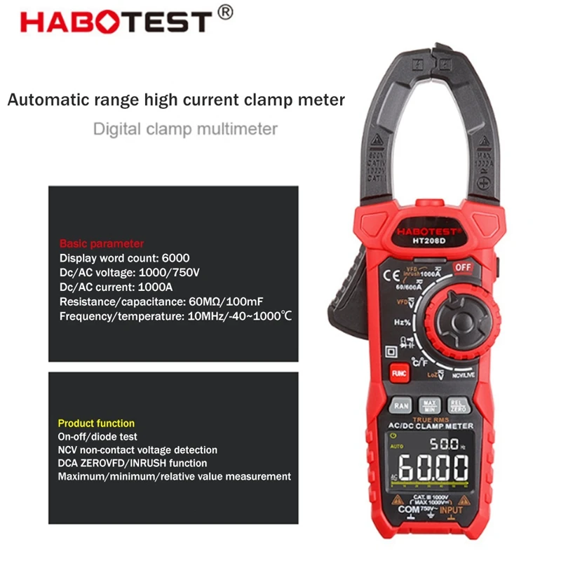 OHvFABskhHere you can buy HABOTEST HT208D Digital Clamp Meter True-RMS Multimeter Anto-Ranging Tester Current Clamp Digital Ammeter Clamp with free delivery to your post office.