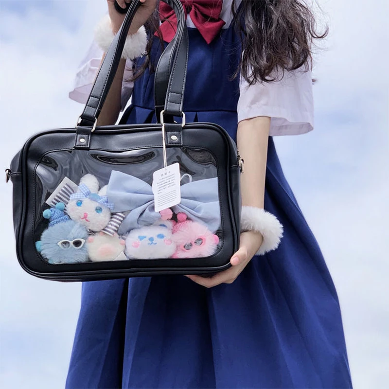 «HAEX Harajuku Lolita Girls Ita Bags Japanese JK Uniform See Through Large Capacity PU Fashion Casual Students Shoulder Satchels» по лучшей цене на рынке! Всего за 23$ (2185рублей)