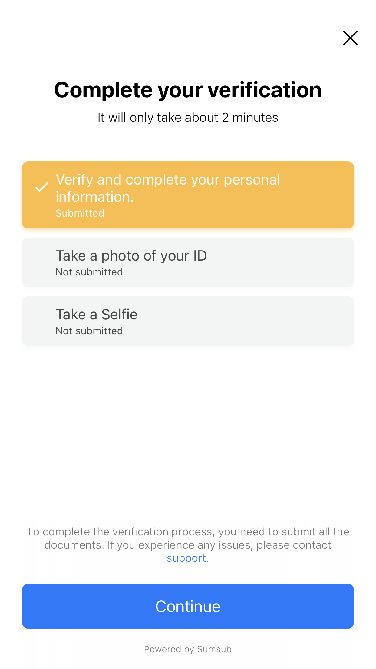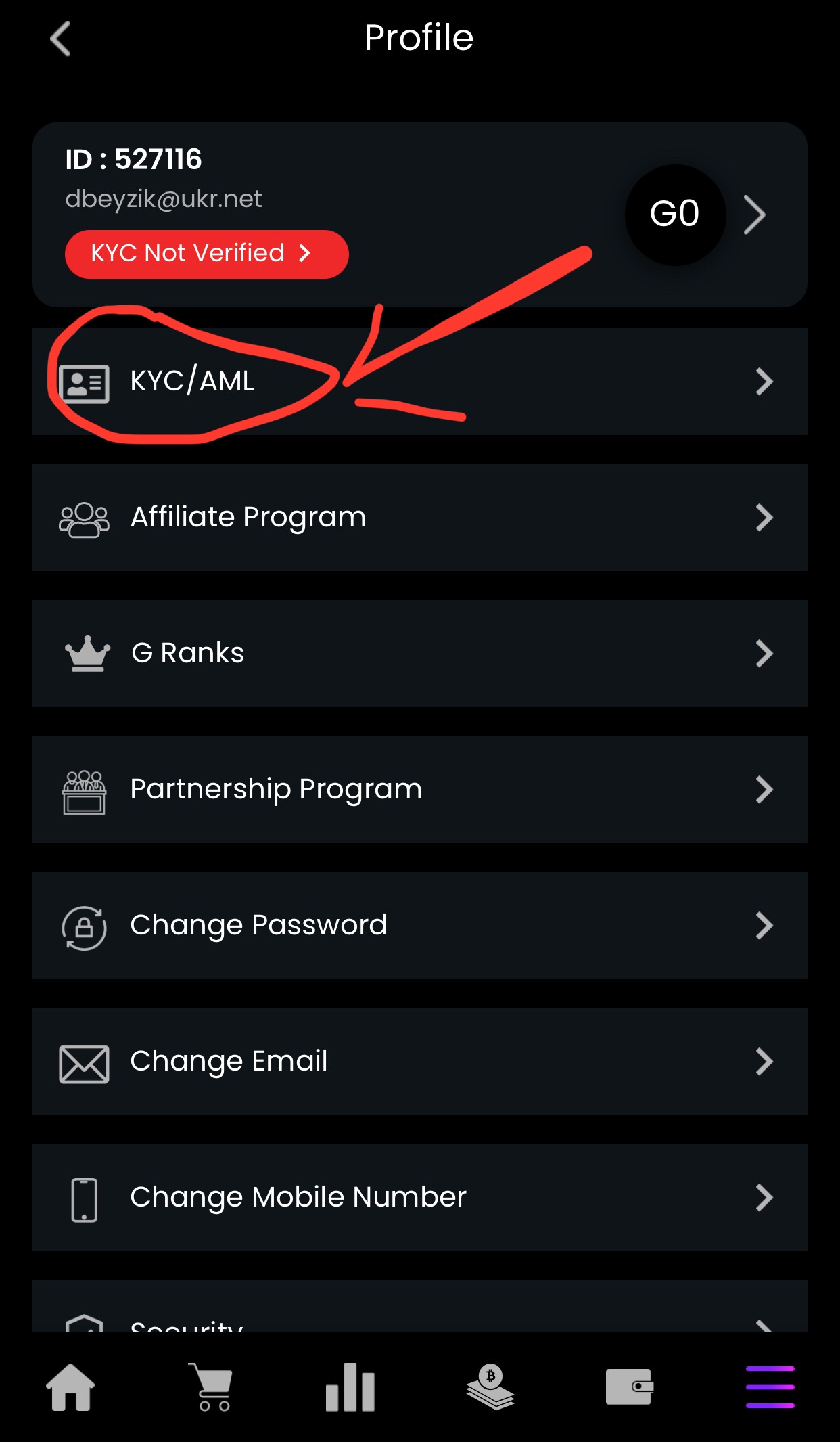 ✔️ при вході в акаунт обираємо KYC, там верифікація максимально проста, і швидка до 1години перевірка!