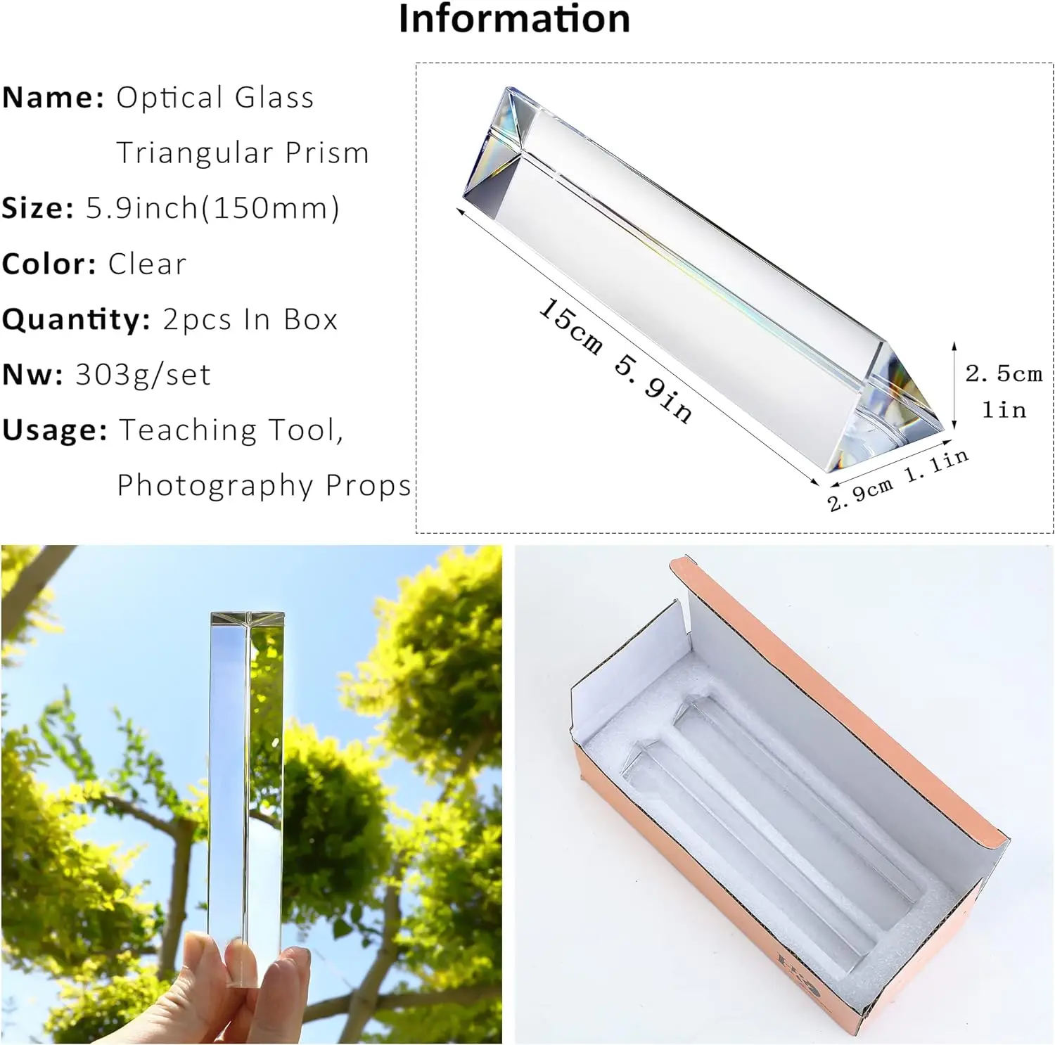 MFbscdTzjLЗдесь вы сможете купить H&D 2 Pack 6in Crystal Optical Glass Clear Triangular Prism for Photography Effects Physics Teaching Light Spectrum Optics Kits с бесплатной доставкой до вашего почтового отделения.