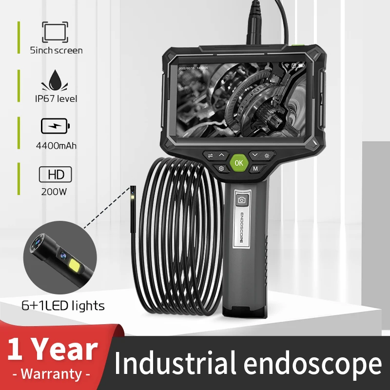 HD 5 Inch IPS Industrial Endoscope Camera Dual Lens Car Borescope With 6 LED with Flexible Probe Case For Automobile maintenanc - Купить с бесплатной доставкой