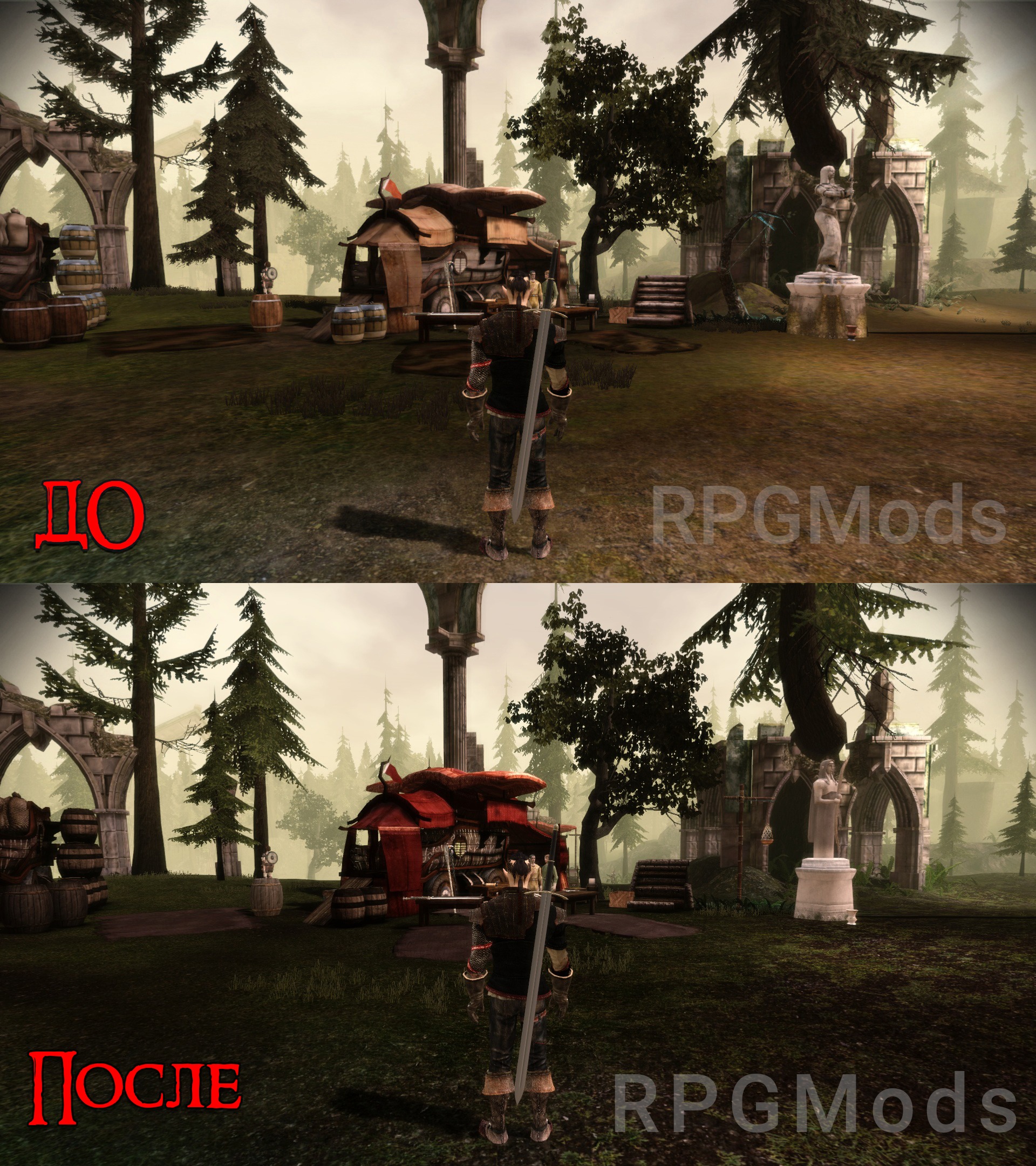 Elven Scenery – заменяет модели эльфийских статуй, элувиана и прочих мелочей в лагере долийцев на модели из игры Dragon Age: Inquisition.