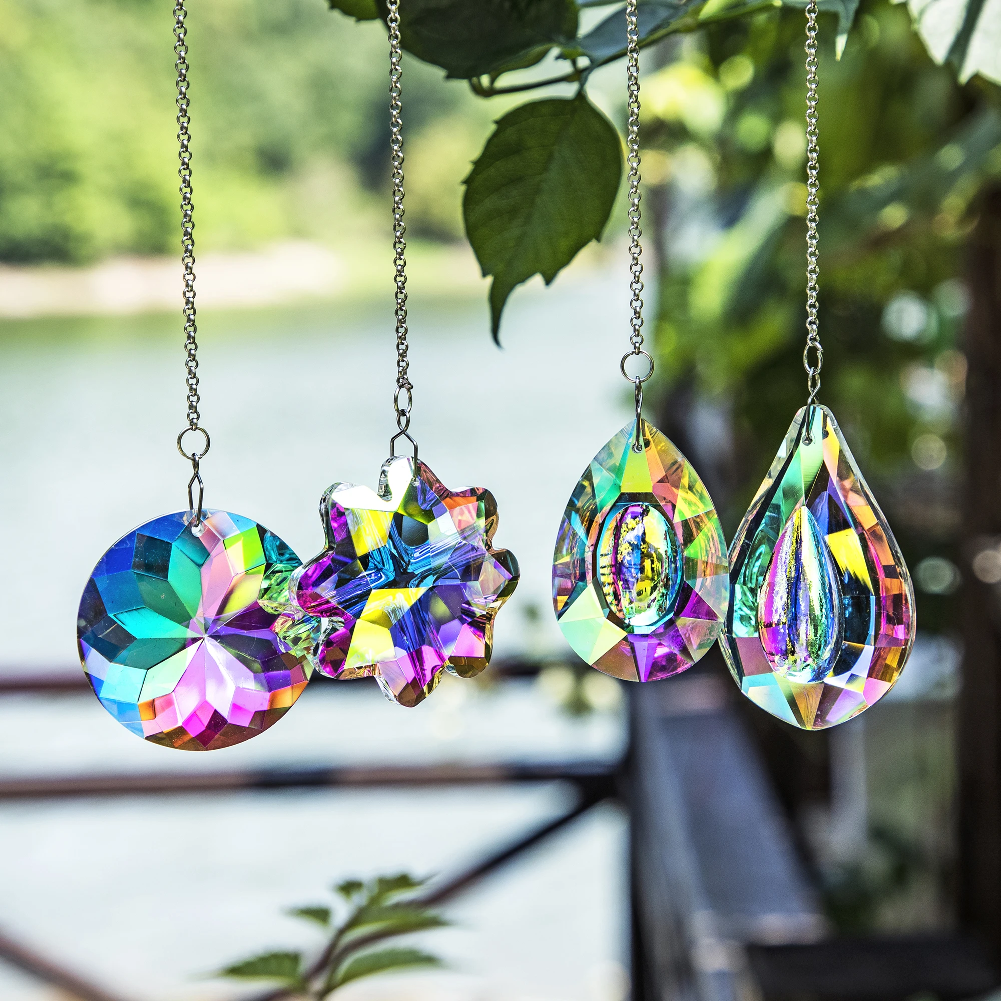 "H&D Pack of 4 Colorful Crystal Suncatchers Window Hanging Rainbow Maker Prisms Bedroom Ornament Home Garden Christmas Tree Decor" * Buy Now Just For 12$
