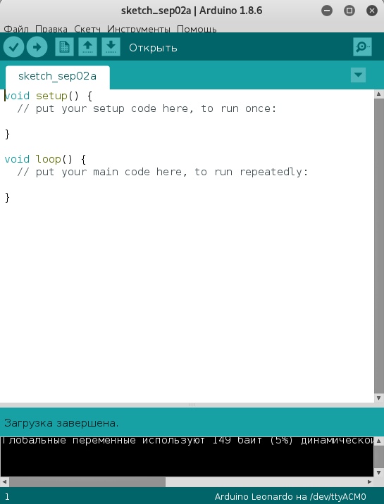 После запуска Arduino IDE картинка будет следующая.