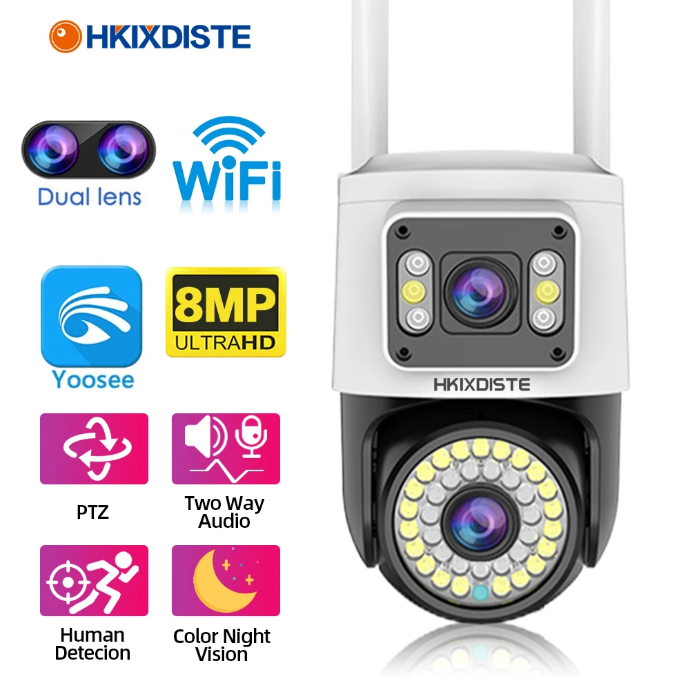 HKIXDISTE 4K 8MP Dual Lens PTZ Wifi Camera Dual Screen AI Human Detection 4MP Security CCTV Video Surveillance Camera Yoosee - Купить с бесплатной доставкой