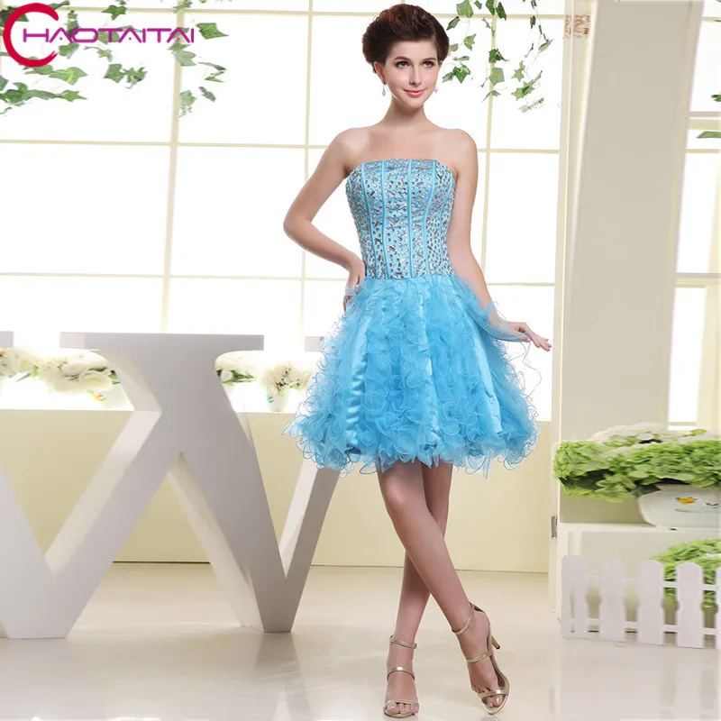 Sweety Graduation Gowns Scoop Sleeveless Empire Short Cocktail Dresses Embroidery Beads Sexy Back A Line Vestidos Cortos LX201