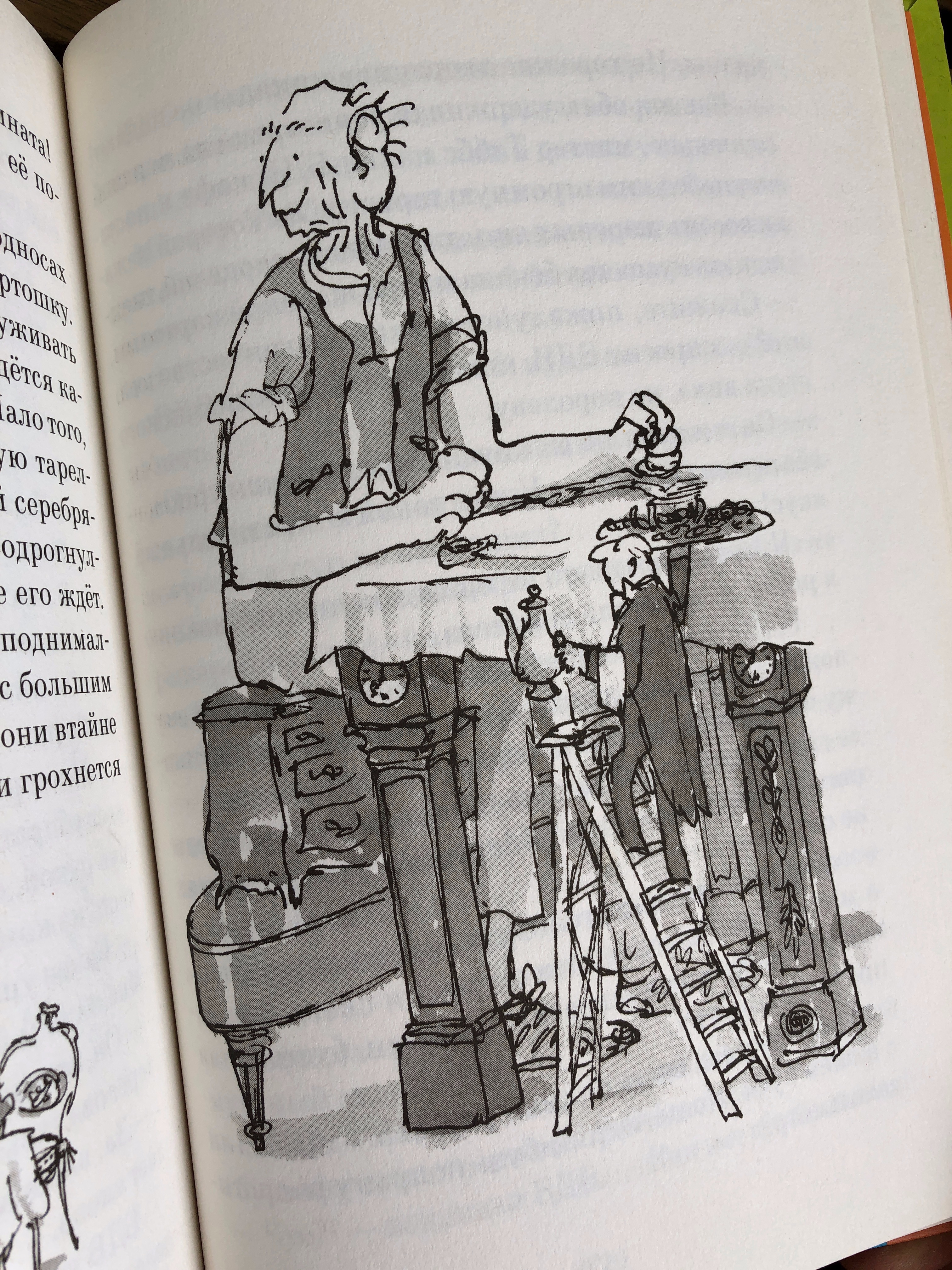 Но книга прекрасна и сама по себе. Дети стопроцентно впечатлятся страной великанов, юмором, коверкаванными словами великана, и небольшой хулиганщинкой, которая есть во всех книгах Роальда Даля😉