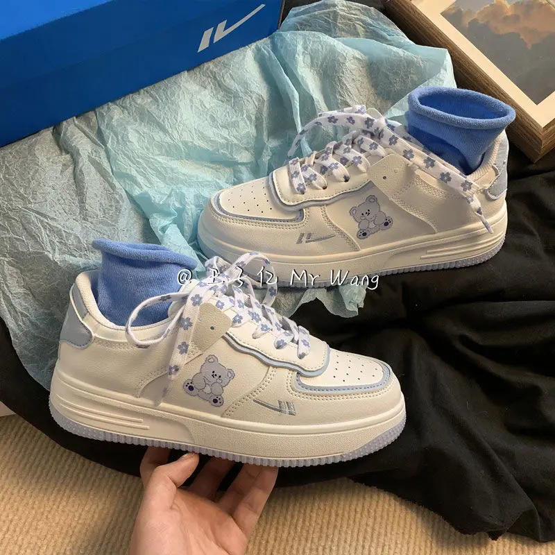 «HOUZHOU Kawaii Bear Shoes Women Sports White Sneakers Platforms 2021 Tennis Female Flats Casual Anime Lolita Harajuku» по лучшей цене на рынке! Всего за 25$ (2375рублей)