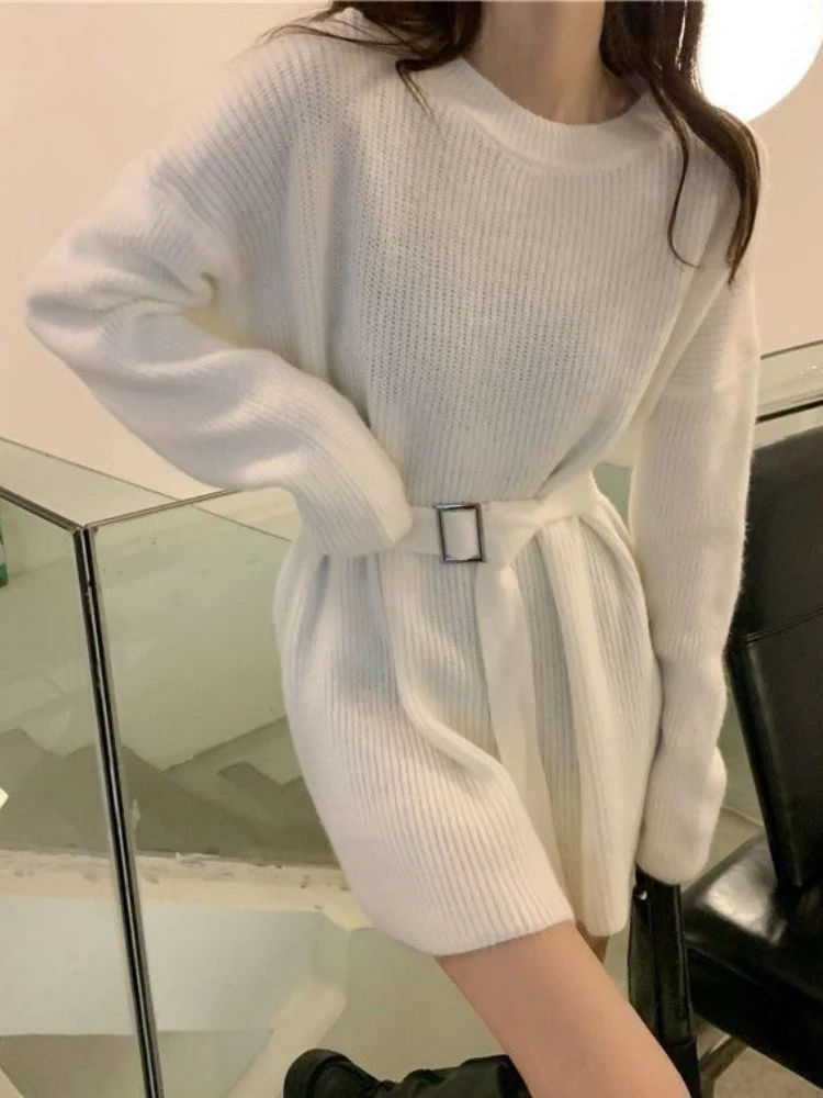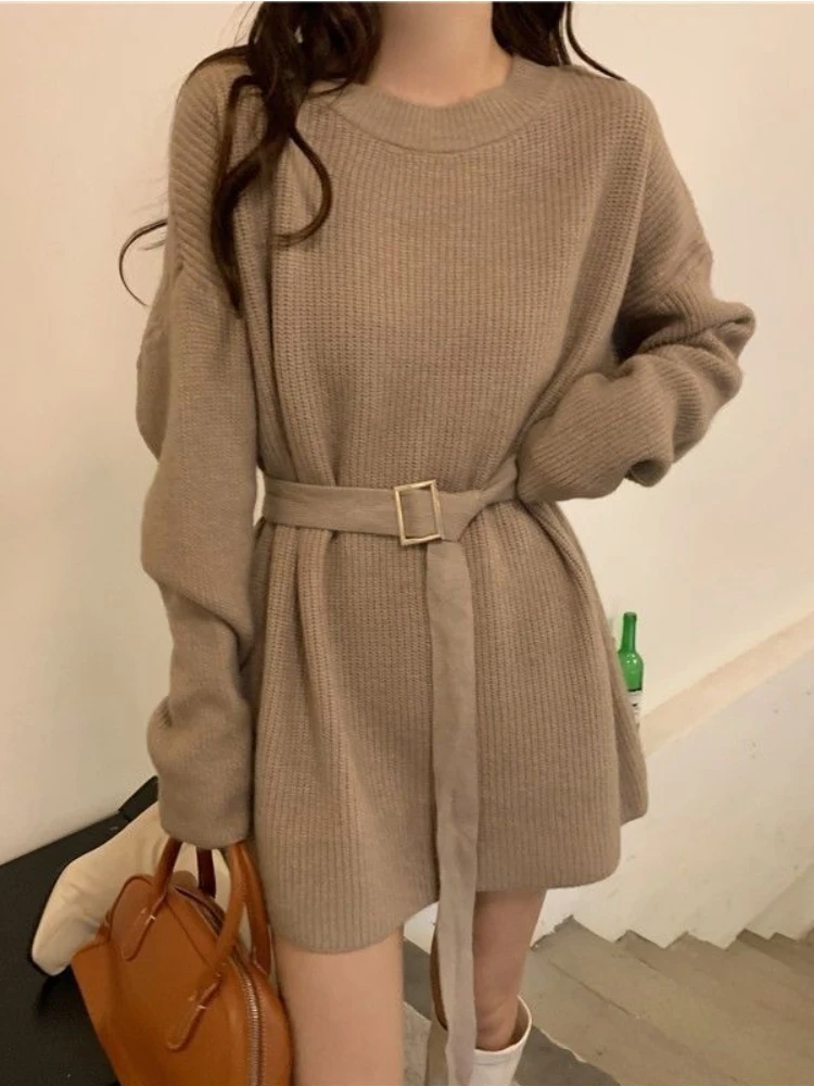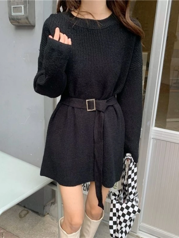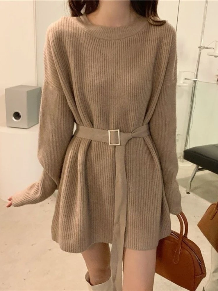 «HOUZHOU Korean Fashion Belt Sweater Women 2022 Autumn Winter Elegant Chic O-Neck Loose Long Sleeve Knit Sweater Casual Pullover» по лучшей цене на рынке! Всего за 17$ (1615рублей)