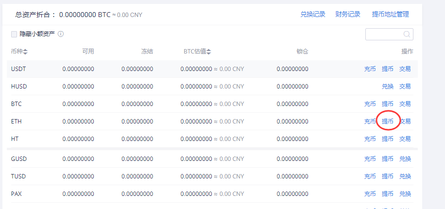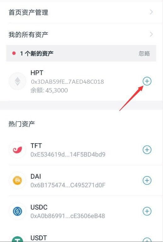 点击右上角资产管理,我的资产。搜索HPT资产