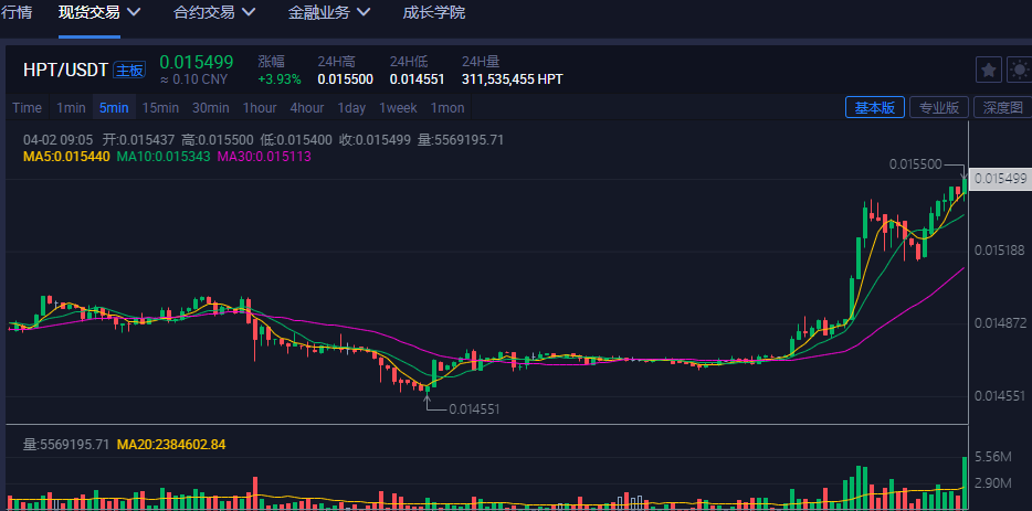 之后选择去交易HPT/USDT