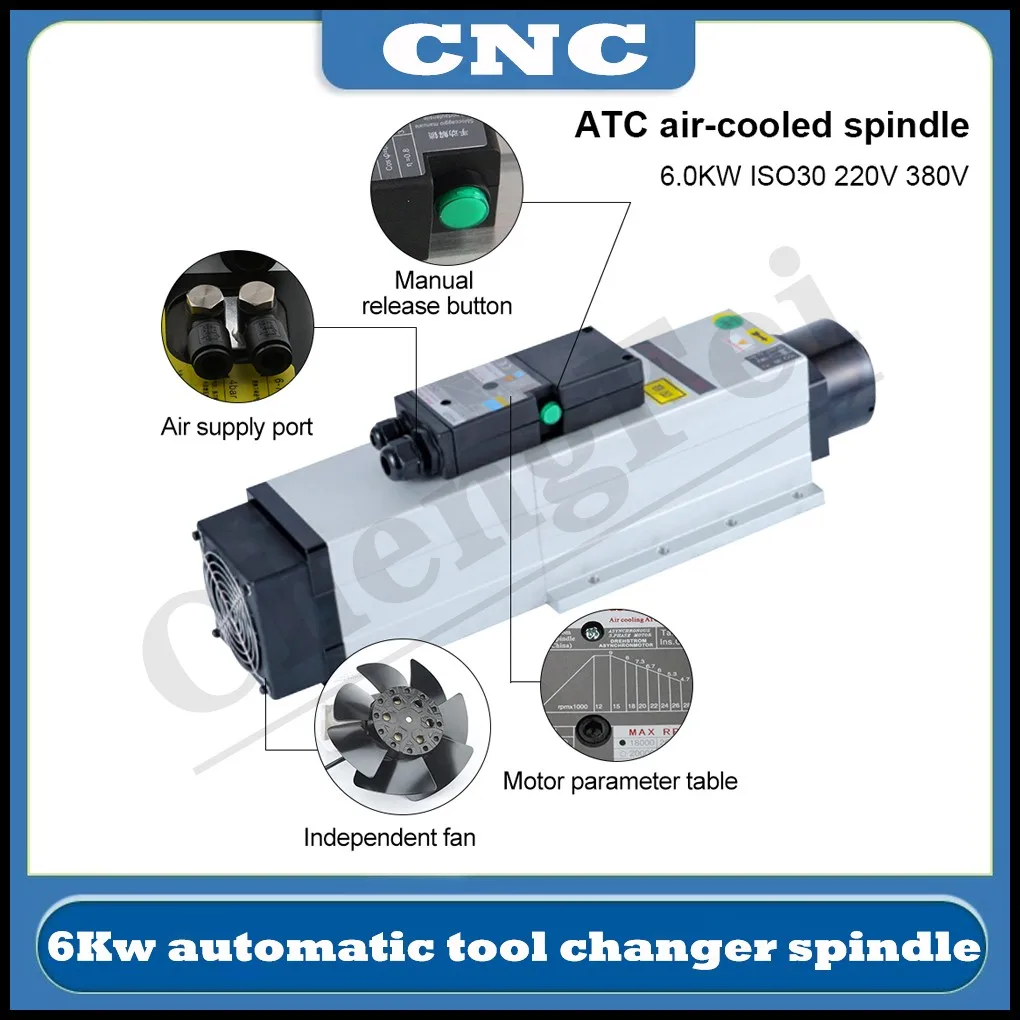 «HQD 6.0kw ATC Air Cooled Spindle AC 220V 380V Automatic Tool Change Spindle ISO30 Tool Holder For CNC Milling Machine Router» по лучшей цене на рынке! Всего за 1687$ (160265рублей)