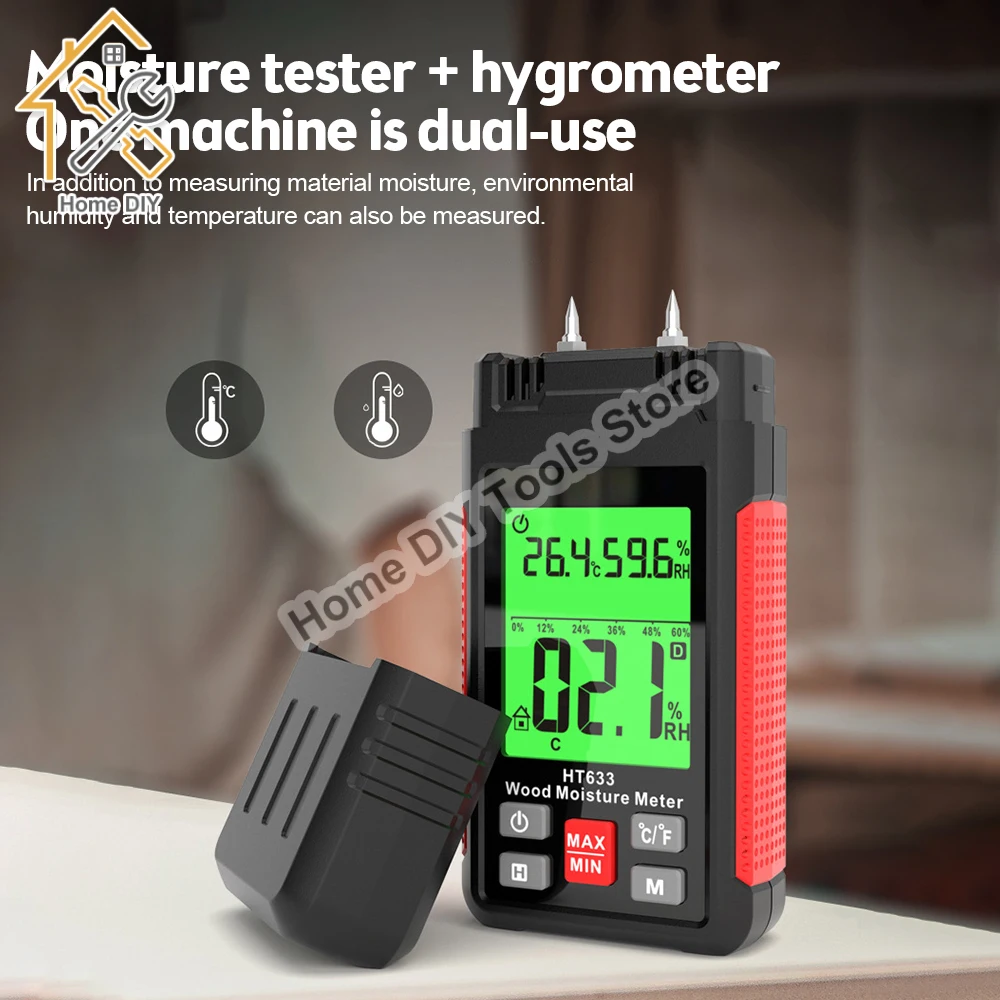 STCtKroHЗдесь вы сможете купить HT633 Digital Wood Moisture Meter Wood Humidity Tester Hygrometer Timber Damp Detector with LCD Backlight Display с бесплатной доставкой до вашего почтового отделения.