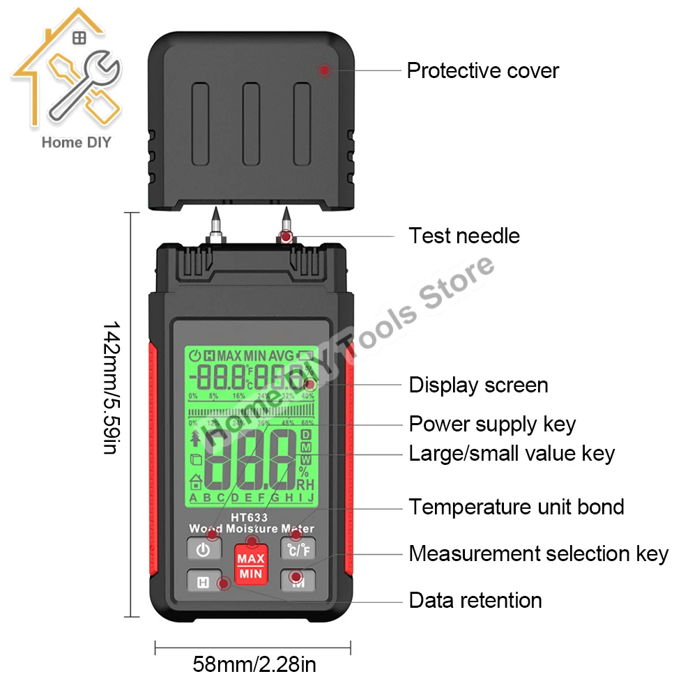 HT633 Digital Wood Moisture Meter Wood Humidity Tester Hygrometer Timber Damp Detector with LCD Backlight Display - Купить с бесплатной доставкой
