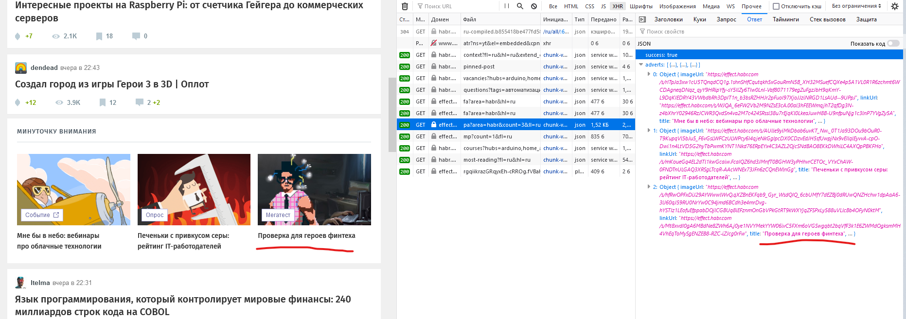 Например рассмотрим запрос, который возвращает данные о разделе "Минуточку внимания":