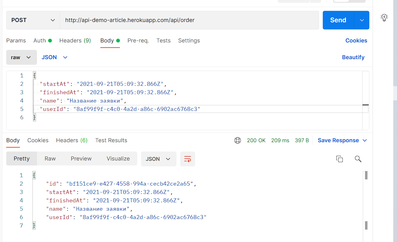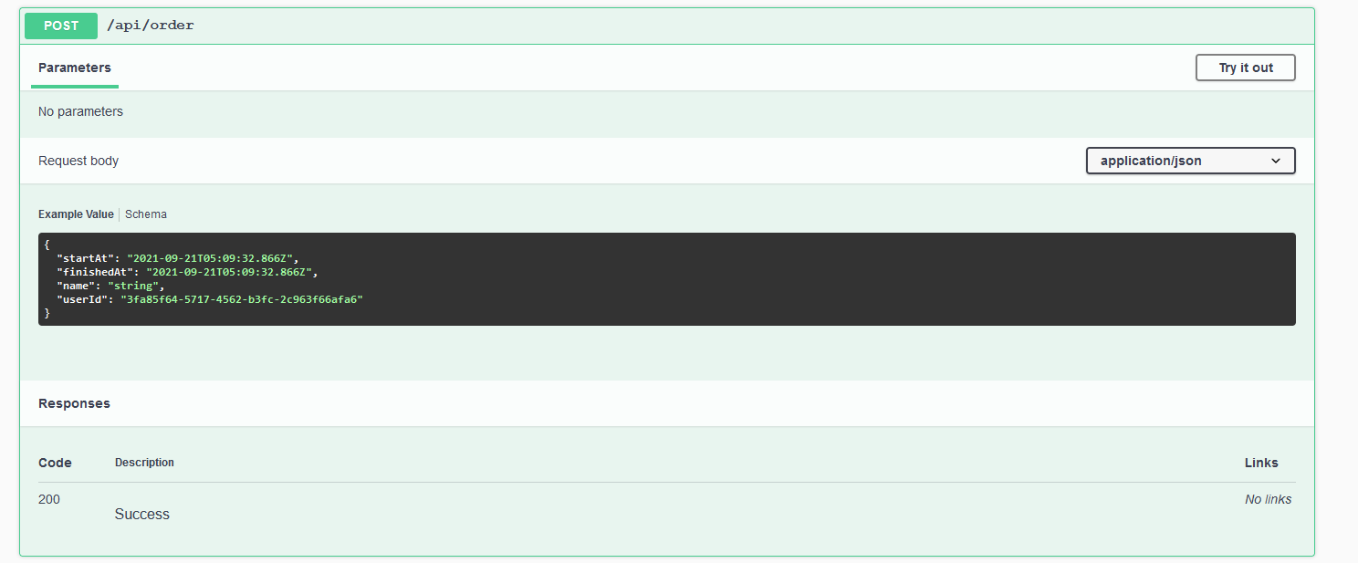 Попробуем создать заявку. Для этого в документации выберем post-запрос в разделе Order: