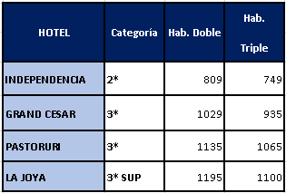 - 03 noches de alojamiento en hotel elegido.