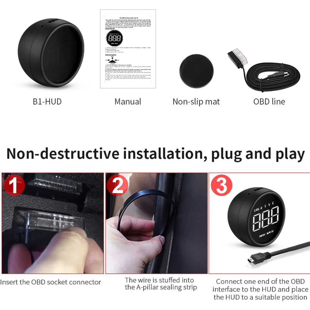 HUD B1 Car Speedometer Fuel Consumption Water Temperature OBD2 Head Up Display With Alarm Function Car Electronic Accessories - Купить с бесплатной доставкой