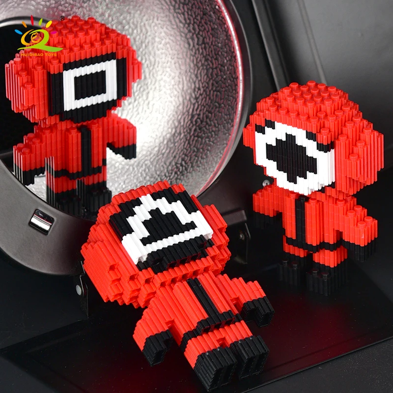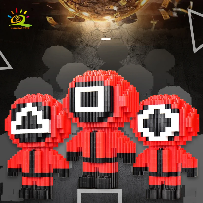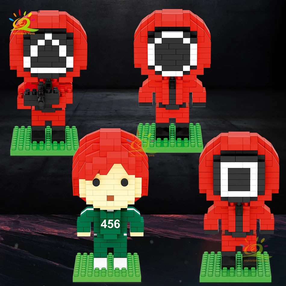HUIQIBAO City Squid Movie Surrounding Protagonist Model Micro Building Block Prison Game Mini Round 6 Bricks Toys For Children - Купить с бесплатной доставкой