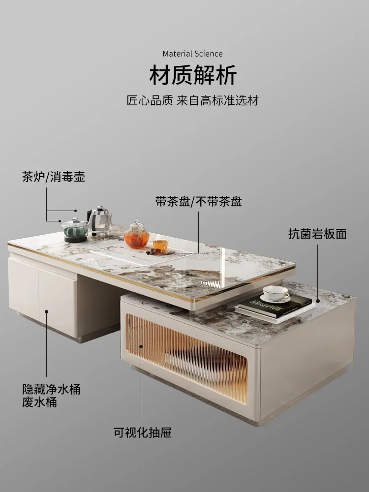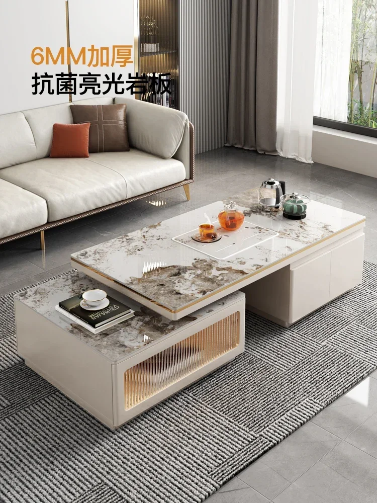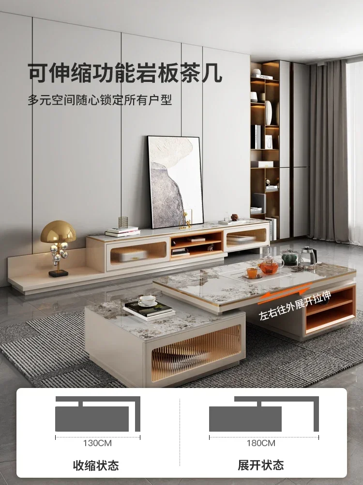 HXL Multi-Functional Coffee Table TV Cabinet Combination Light Luxury Stone Plate Retractable Household Rectangular Tea Table - Купить с бесплатной доставкой