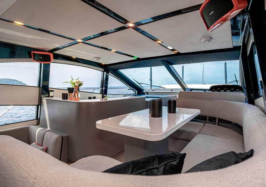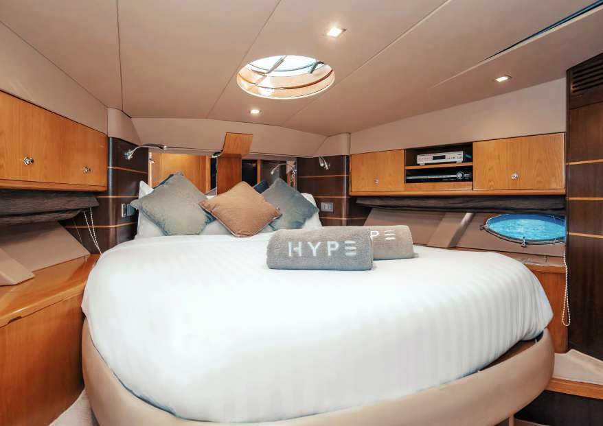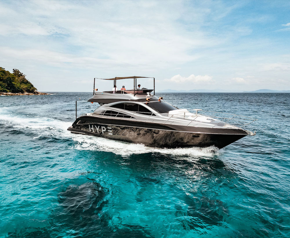 Новейшая, 55-футовая яхта HYPE оснащена современным интерьером, профессиональной звуковой и световой системой, на борту имеется 6 удобных лаунжей, Vip-каюты, снаряжение для снорклинга, моторная лодка, спасательные жилеты, а также раздевалка с душами и кондеционерами, обслуживает всю эту красоту профессиональная команда экипажа, включая профессионального DJ для дневных поездок