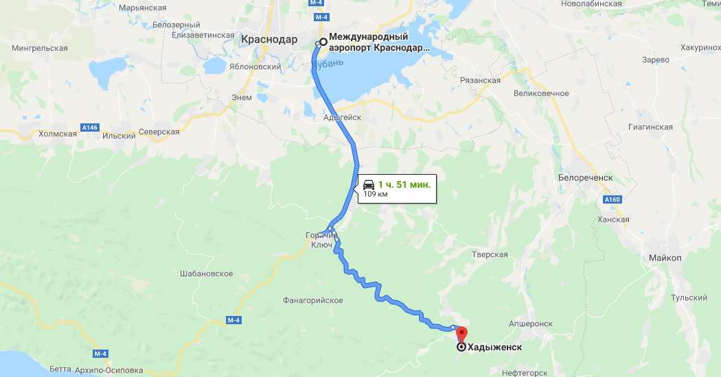 Хадыженск туапсе расстояние