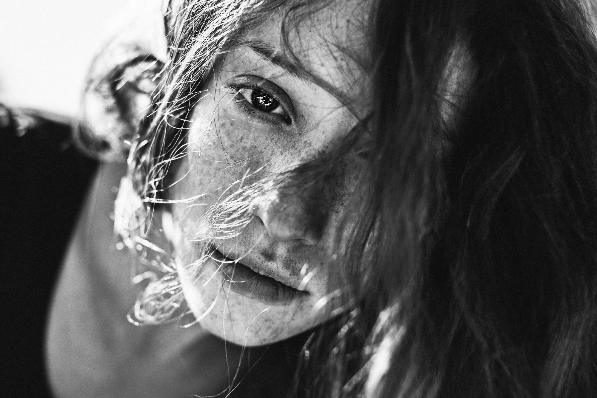 Hair covering face