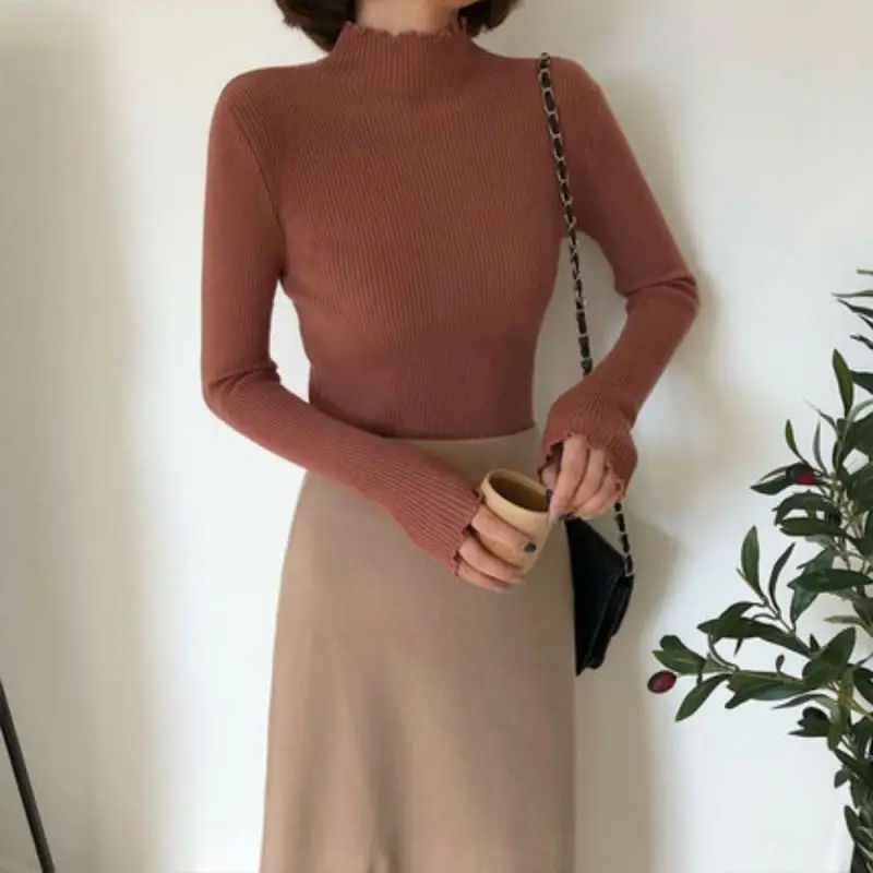 «Half turtleneck sweater with wood ears women's 2021 spring and autumn new Korean soft waxy slim stretch warm base sweater» по лучшей цене на рынке! Всего за 15$ (1425рублей)